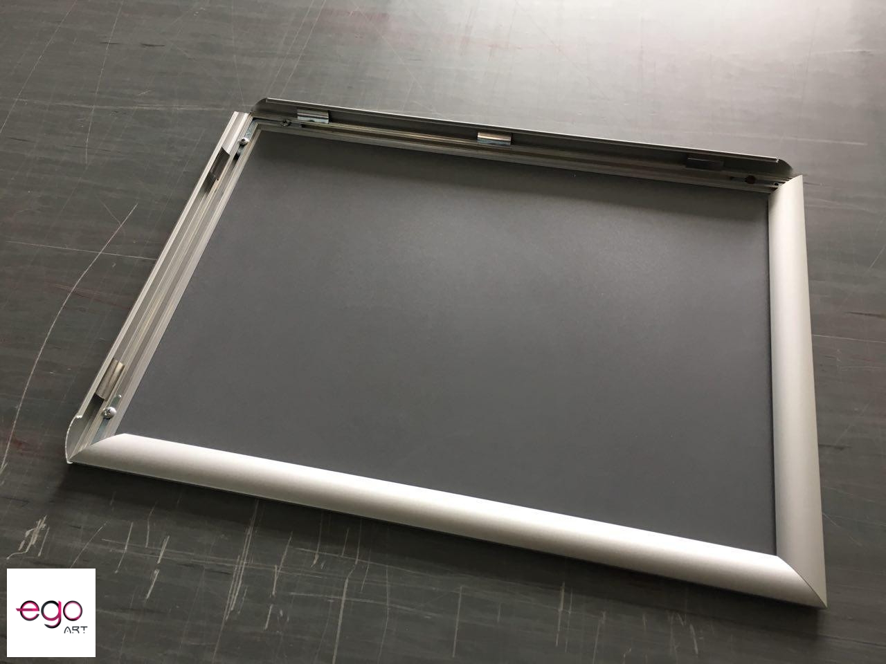 Estetyczne aluminiowe ramki zatrzaskowe na plakaty z błyskawiczną wymianą grafiki (system OWZ) - otwierasz profil / wkładasz grafikę / zatrzaskujesz profil. W komplecie gruba folia zabezpieczająca wydruk. Szerokość profilu ramy zatrzaskowej: 25mm